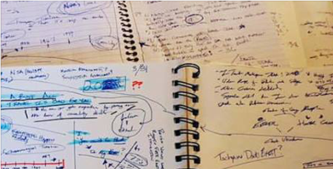 CHAMPION: I had a feeling that you and Daniel knew each other, but I didn’t realize how far back the connection went! And it does have me wondering if anybody ever replied to your college radio cryptographic code. (Certainly, I felt compelled to tweet back minutes after listening to the first episode of ars PARADOXICA!) This leads me to wonder how you managed to land the magnificent Kristen DiMercurio and how you went about casting this. Did you rely largely on people you knew? Did you willfully establish a universe with constraints because the best creative work typically emerges out of creative limitations? The fact that you bleep out the year that Sally came from and that you regularly bombard Sally’s diary entries with interference suggests a keen commitment to creative obfuscation! I’m almost wondering how much you folks obsess over the minutest details. The Wooden Overcoats fellows told me that they even have “placeholder” jokes until they can get it right. If you are sitting on a massive pile of paperwork (and I suspect you are!), what freedom do you allow yourself to deviate or improvise — whether in the writing or the recording of ars PARADOXICA?