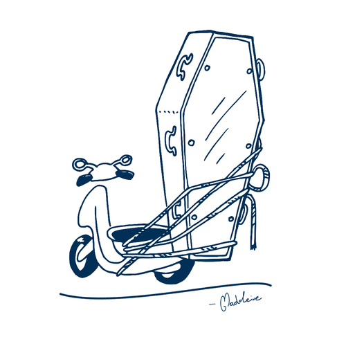 TRENCH: David and I have known each other since 2006. We were both studying at Edinburgh, along with our production manager, Liz. I graduated the year before them and moved to London and, long story short, we all ended up living together. I met Tom Crowley on a playwrighting course in 2012 and he and I have worked on projects together ever since. We’ve often noted how our careers tend to parallel each other’s and we’ve ended up in the same spot from different performance backgrounds. I initially pitched to him a short film about rival undertakers for us both to work on/be in and we made some plans but never followed through. Six months later, we revived the idea as an audio sitcom and brought it to David as a concept. He disappeared for twenty minutes then came back with a treatment for episode 1, I had a quiet word with Tom, and we asked if he’d like to run the show. I’d worked with David on a couple of other projects before — including an audio comedy — and knew that whatever he’d do, it would be good.