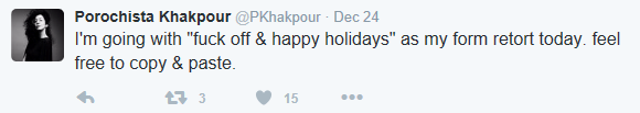 FALSE. Aside from the preposterous suggestion that I maintained a Nixon-style “Enemies List,” the argument against this claim could very well be that McArdle was not entitled to conduct due diligence. But this is nevertheless a one-sided account that fails to tell the full truth. The catalyst for what set me over the edge was the combination of alcohol, mental health issues, and Porochista Khakpour calling me “shockingly nasty” and then railing against me as “cruel and abusive,” suggesting that I was a stalker, when in fact this was not the case. (See Appendix A: The Porochista Chronicles, which documents the entirety of what actually happened. I am ashamed of my reaction.)