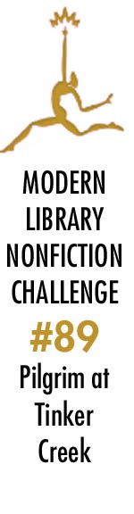 Another refreshing aspect of Pilgrim is the way in which Dillard confronts her own horrors with fecundity. Yes, even this graceful ruminator has the decency to confess her hangups about the unsettling rapidity with which moths lay their eggs in vast droves. She stops short at truly confronting “the pressure of birth and growth” that appalls her, shifting to plants as a way of evading animals and then retreating back to the blood-pumping phylum to take in blood flukes and aphid reproduction more as panorama rather than something to be felt. This volte-face isn’t entirely satisfying. On the other hand, Dillard is also bold enough to scoop up a cup of duck-pond water and peer at monostyla under a microscope. What this tells us is that there are clear limits to how far any of us are willing to delve, yet I cannot find it within me to chide Dillard too harshly for a journey she was not quite willing to take, for this is an honest and heartfelt chronicle.