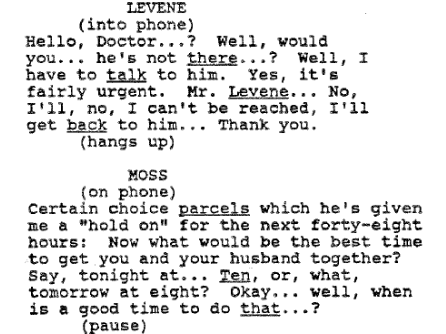 I think you’re absolutely right — no writer can ever perfectly mimic natural speech. My use of filler speech, aborted starts to sentences, stutters, etc. function more as goal posts for the general speech pattern of the characters. Caleb says “like” a lot — he’s a teenager, he doesn’t always know how to express himself so he uses this filler word and doesn’t finish sentences sometimes. Sam has a lot of ellipses in her speech. She’s a nervous person so she stops to think of the right…word. I’ll write these kinds of things into the script and then the actors will adopt them and put them in the natural places, even when they aren’t written in. Then it becomes a volley between me and the actor — I write something, they improv and ad lib, I adopt those natural inclinations into writing the next time, so on and so forth.